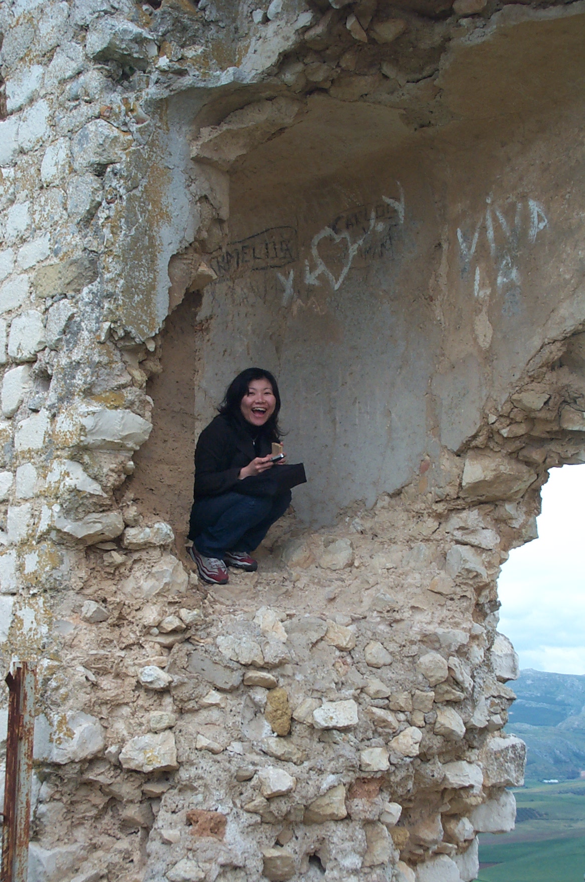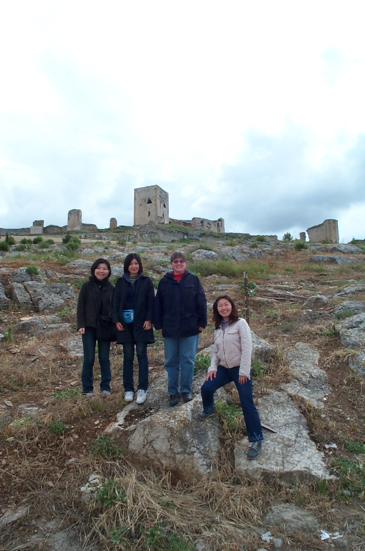 During many of our trips back and forth to the doctors in Rota we have passed many interesting pueblos with very appealing castles. One day early in May 2004 we had an extra day on a rental car, so after school, we invited some friends (Saori, Rieko, and Masako) from school to join our adventure and take a look at castles in Teba and Antequerra. A great time was had by all. However true to form, it rained for the second half of our trip. We all got wet but nobody noticed.