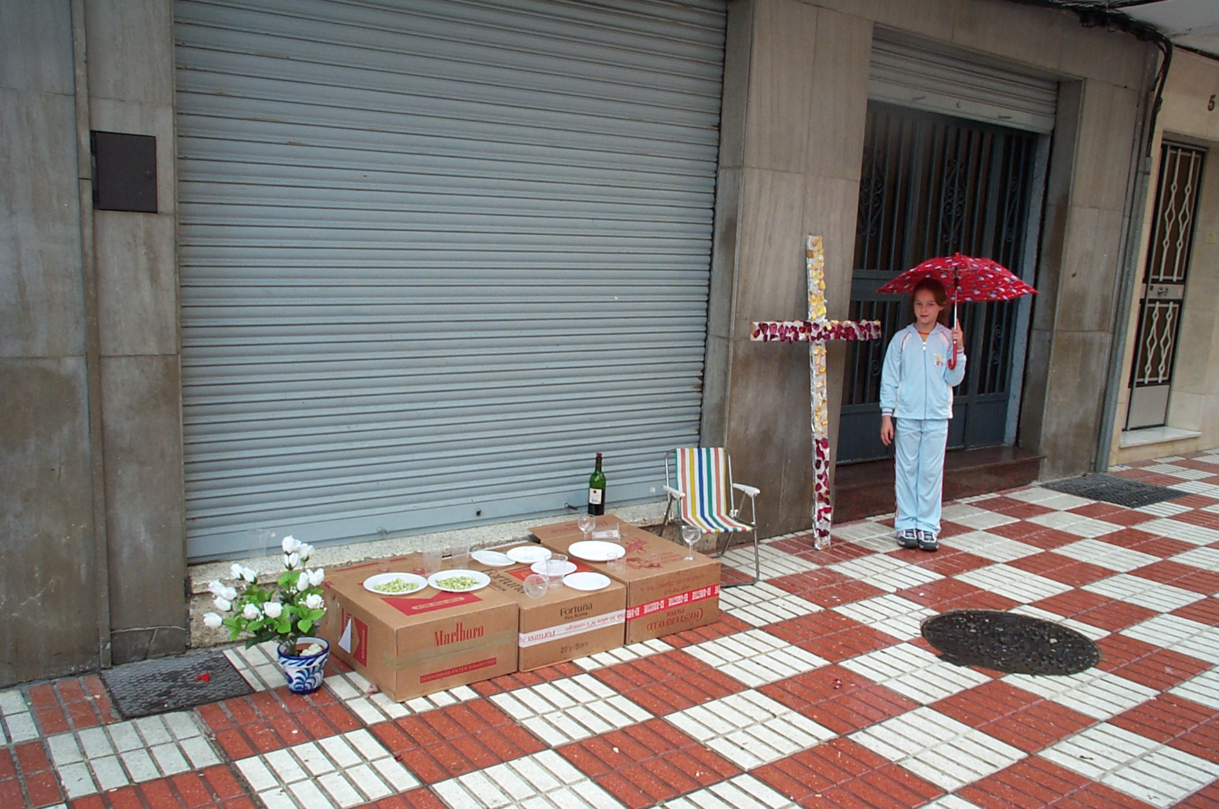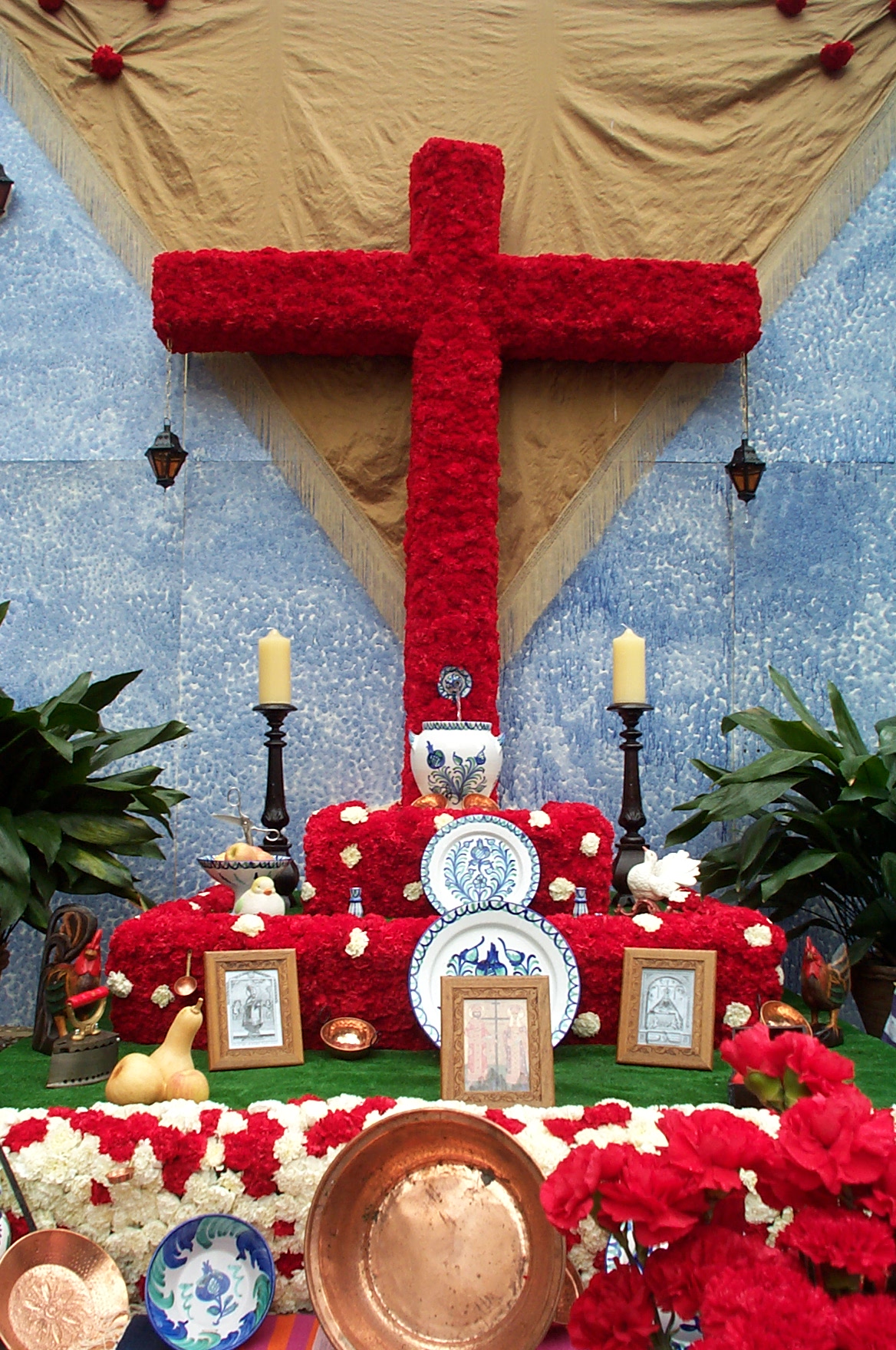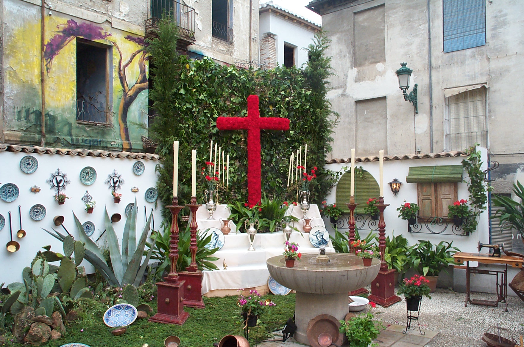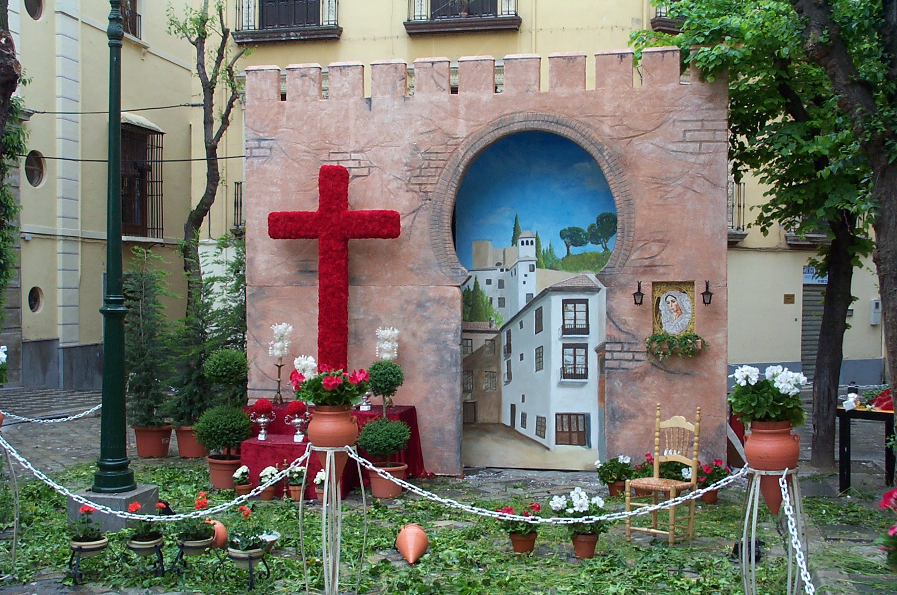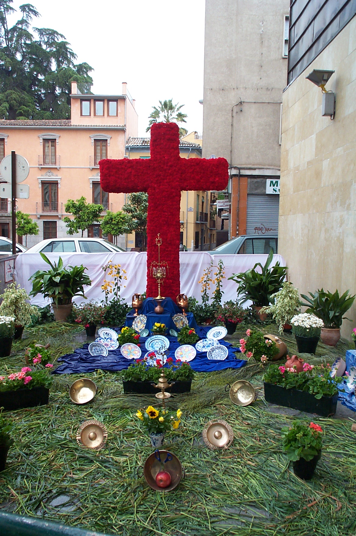 El Día de la Cruz is a holiday celebrated in Granada. It is actually May 3rd, but official activities begin at noon on the 2nd. Different non-profit organizations construct a cross, which is on display for the 24 hours. People go to the different plazas to see the crosses, drink beer, eat, dance Sevillanas and have fun.