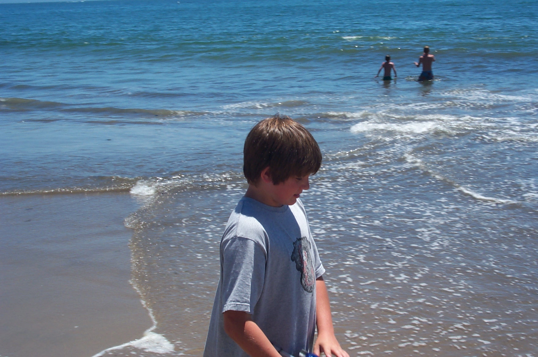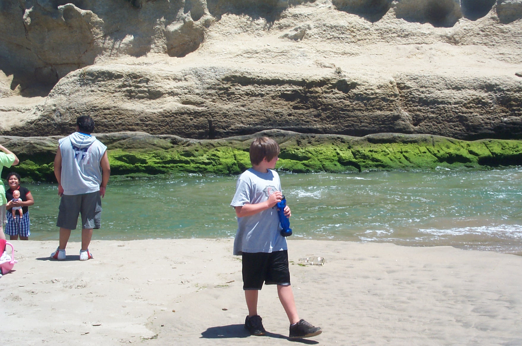 Jake inspecting the creek flowing into the ocean. |