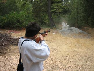 Lexi, Derek, Gusta, and Peter came to visit the first week of October 2006. There was general visiting and stuff. Sunday, October 1, Tom, Derek, and Peter went up to the hills to check things out and shoot a bunch of bullets. That same day a birthday dinner was held for Gusta (belated), Peter, and Lexi. The honorees and invited guests had a great time. The rest of the week was spent chatting, shopping, eating, shooting bullets and site seeing. Gusta and Peter went to a wedding in Central California mid week and Lexi and Derek returned to Missouri on Sunday.